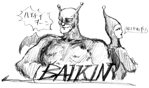 「バイOンマン」 よく知られたあれである。 彼が気に入ってるキャラクターの一つである。